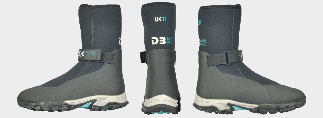 The DBSs are constructed in 5mm neoprene with glued, blind stitched and fully taped seams, and are bonded onto an ultra grippy sole with a cushioned EVA midsole. Once integrated with our legwear outer ankle seal, they create the ultimate comfy and warm footwear solution. Water finds it difficult to enter to the boots due to the tunnel ankle system created with the inner waterproof sock, boot and outer ankle seal - however if water does find its way in, simply empty and continue to enjoy the comfort of neoprene warmth and unrivalled grip.