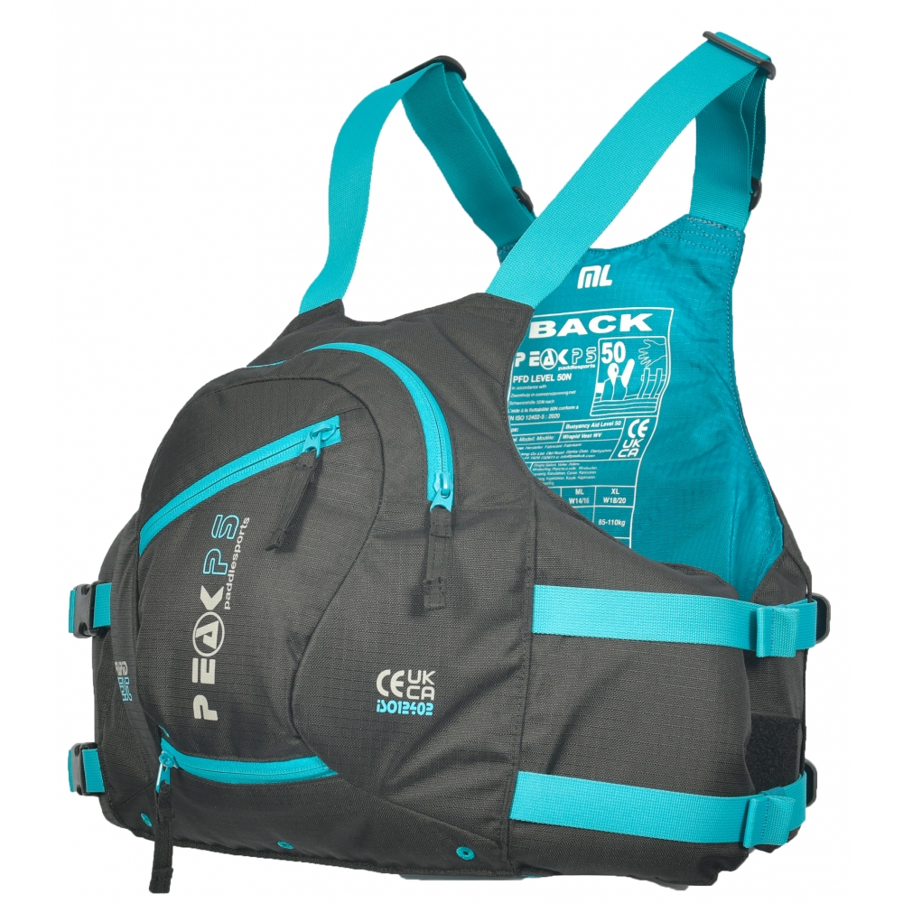 The front of the PFD is connected to the back with twin side release buckles and adjusted with rear tensioners. Teamed with our figure hugging shoulder adjusters, the Wrapid Vest is easy to fit and ultra comfortable.